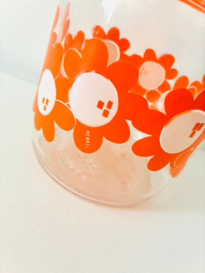 Le célèbre bocal Henkel en verre à fleurs oranges petit format vintage 70’s.