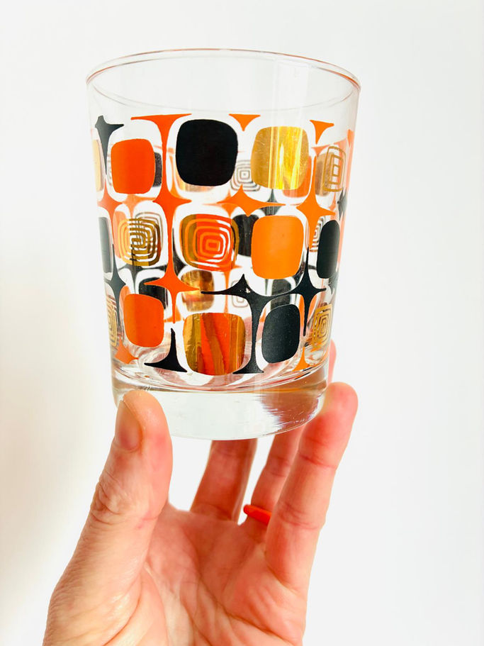Verre à eau ou à liqueur motifs géométriques 70’s